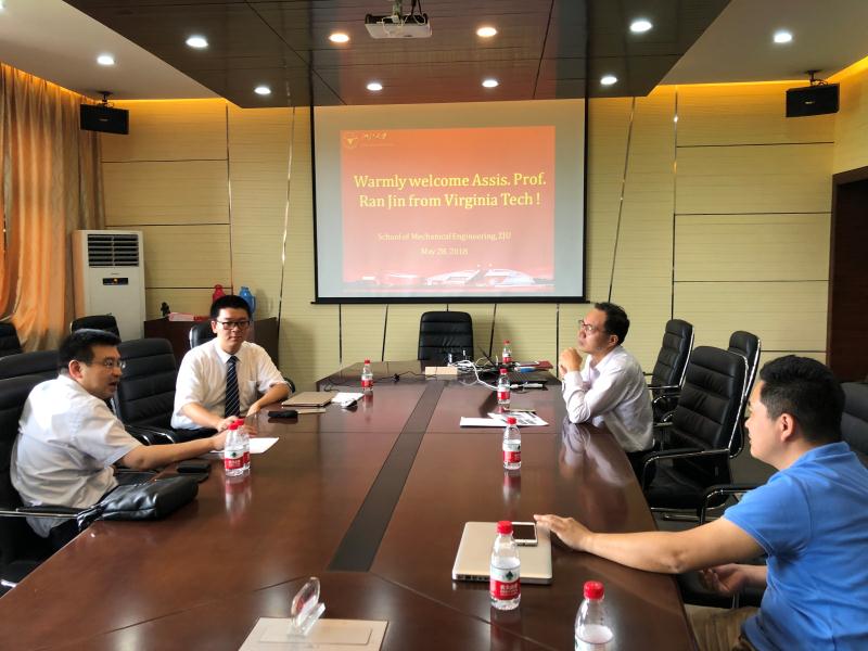 随后,傅建中等三位教授向金然老师介绍了机械工程学院的办学情况。目前我院人才培养方案在不断改进和优化,学院的科研实力不断增强,科研成果丰硕,我院学生的专业素质和科研水平也因此取得了长足进步,并表示愿意同弗吉尼亚理工大学建立长久良好的交流合作关系。