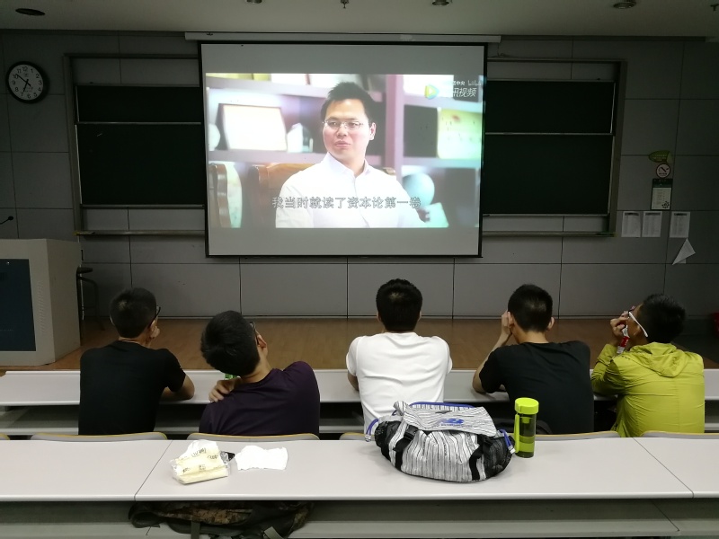 观影学习在5月19日晚6点30分在紫金港西二105教室中开始,由陈雷同学主持。陈雷同学介绍了本次观影学习的主要内容与目的后观影学习即宣告开始。本次学习的内容是两个内容精炼和蕴意深厚的短片,是由时代先锋网制作、由共青团中央推广的《你好,马克思》系列。短片以同龄人访谈的形式展开,谈到对马克思以及马克思主义的不同理解,探讨当下中国青年思想与舆论导向中可能存在的问题,阐述了当代中国马克思主义的时代价值。短片将宣传、实践马克思主义比喻作“精神原子弹”,暗喻马克思主义为我们认识世界、改造世界提供了强大了思想力量。