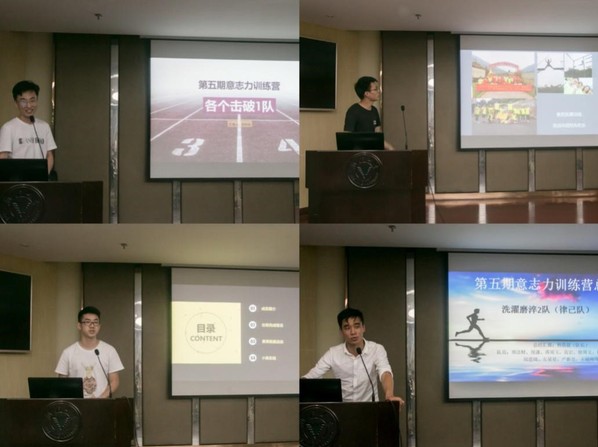 第五届意志力训练营一共成立了十支意志力训练战队,在训练营期间他们相互监督,相互勉励,完成自己的战队任务的同时参加了一系列锻炼意志的活动,如素质拓展,瑜伽体验。在欢乐中锻炼意志,在活动中提高自己。各个战队也对在这一段时间内取得的成果和收获做了总结。