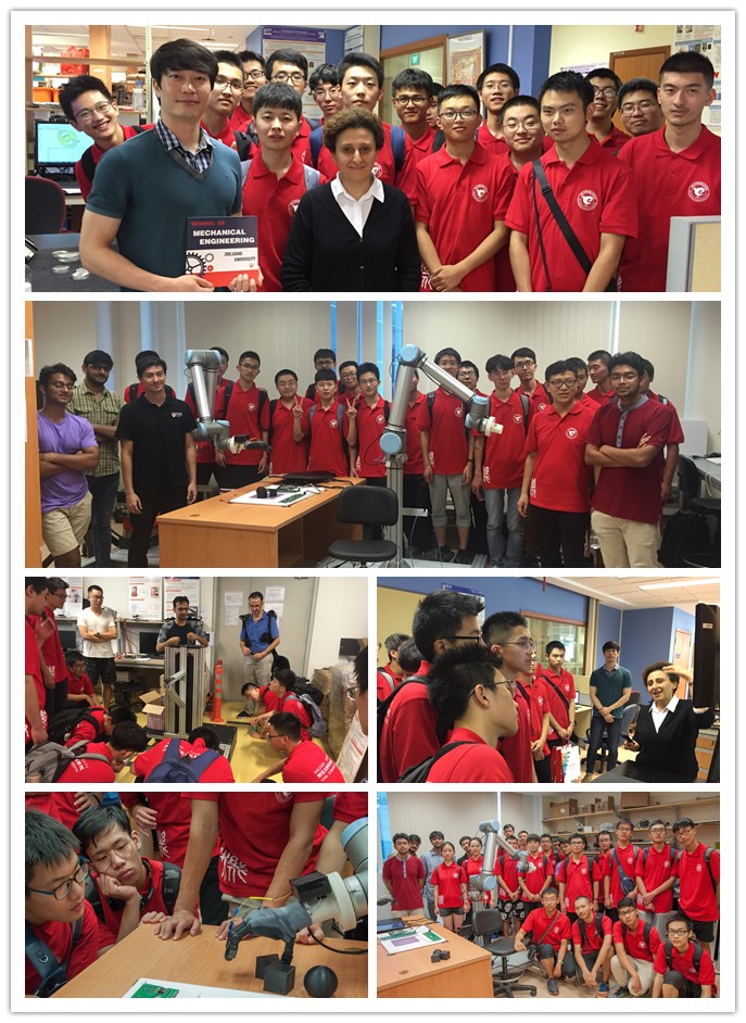 在新加坡国立大学(NUS),实验室参观给同学们留下了十分深刻的印象,神经科学实验室,一些先进的医疗器械原型和科研思路让同学们大开眼界; SINAPSE实验室,实验室研究人员则向同学们详细展示了最新开发的图像识别处理硬件和机械手系统,同时就机械手识别抓取物体的过程与同学们进行了深入交流;Robot Lab实验室,同学们有机会见到了一些正在开发中的机器人原型,有辅助中风患者康复的外骨骼机器人、四足机械狗等等。浙大校友、Professor  Zhou Guangya(Mechanical Engineering, NUS)与同学们一起座谈,并向大家简要介绍了学校和学院的基本情况,并特别提到了研究生招生的有关政策,欢迎有兴趣的同学将来可以到NUS继续深造,同时还谈到了和浙江大学机械学院之间的一些合作设想。