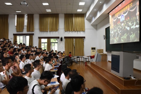 随后,全体研究生新生共同观看了林俊德院士事迹视频。故事从林院士二十五岁接受研制测量核爆炸任务开始,真实记录了这名浙大机械人扎根大漠戈壁五十二年,为国防和军队现代化建设贡献卓越成果的人生经历。到最后林院士为了让保密国家核心技术文件以及方便后人的学术研究,与死神作斗争的片段中,教室里氤氲起哽咽声。