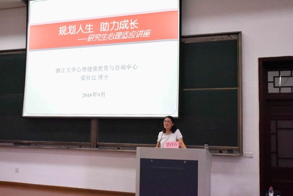 讲座最后,梁社红博士分析了研究生适应科研环境和建立人际关系的常见问题及其出现原因,并对症下药,给出了解答方案。她告诉新生们,心理咨询师首先帮助对象得到行为改变,进而获得认知上的改变,最后才是达到三观的改变。不如意事常八九,最害怕中途选择了自我怀疑,自我放弃。在研究生新生们初入浙大校园之际,本次心理适应讲座的重要性不言而喻。