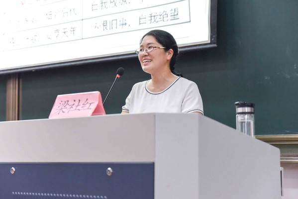 第一个方面的讲述开始于一个简洁而愉悦的“跳跳羊”的故事。梁博士借助视频故事,向新生们抛出“以怎样的态度面对困境”问题。随后,向同学们诠释了“谈话疗法”和“行为训练”两个经典心理咨询方法,引导在座新生们自主地思考,如何走出心理困境,获得自我认同。第二方面,人是独立的存在,但不是孤立的存在,建立亲密关系是每个人心理均衡发展的关键任务。梁社红博士指出,成年期亲密关系发展顺利的人,其事业成功的可能性与幸福指数远高于平均值。相反,那些有亲密关系发展障碍的人,沟通能力和事业发展往往乏善可陈。