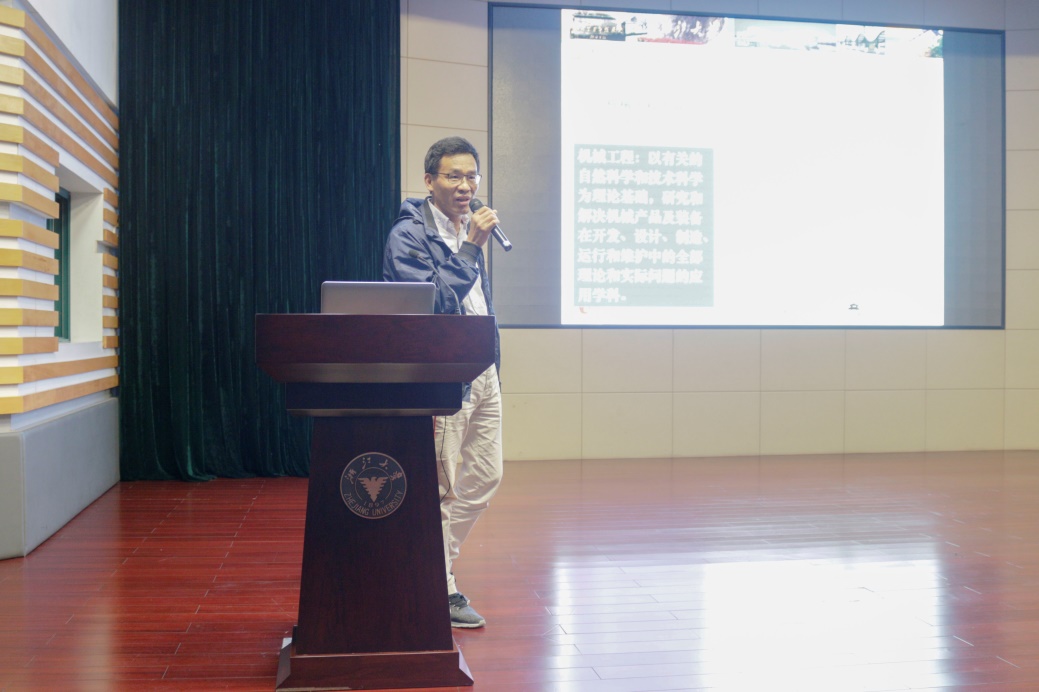 紧接着,机械工程学院三个专业负责人杨将新教授、谢金教授、纪杨建教授分别为同学们介绍了机械工程、机械电子工程和工业工程三个专业。