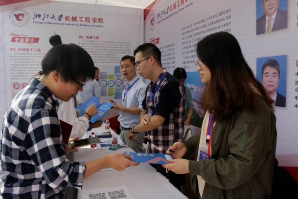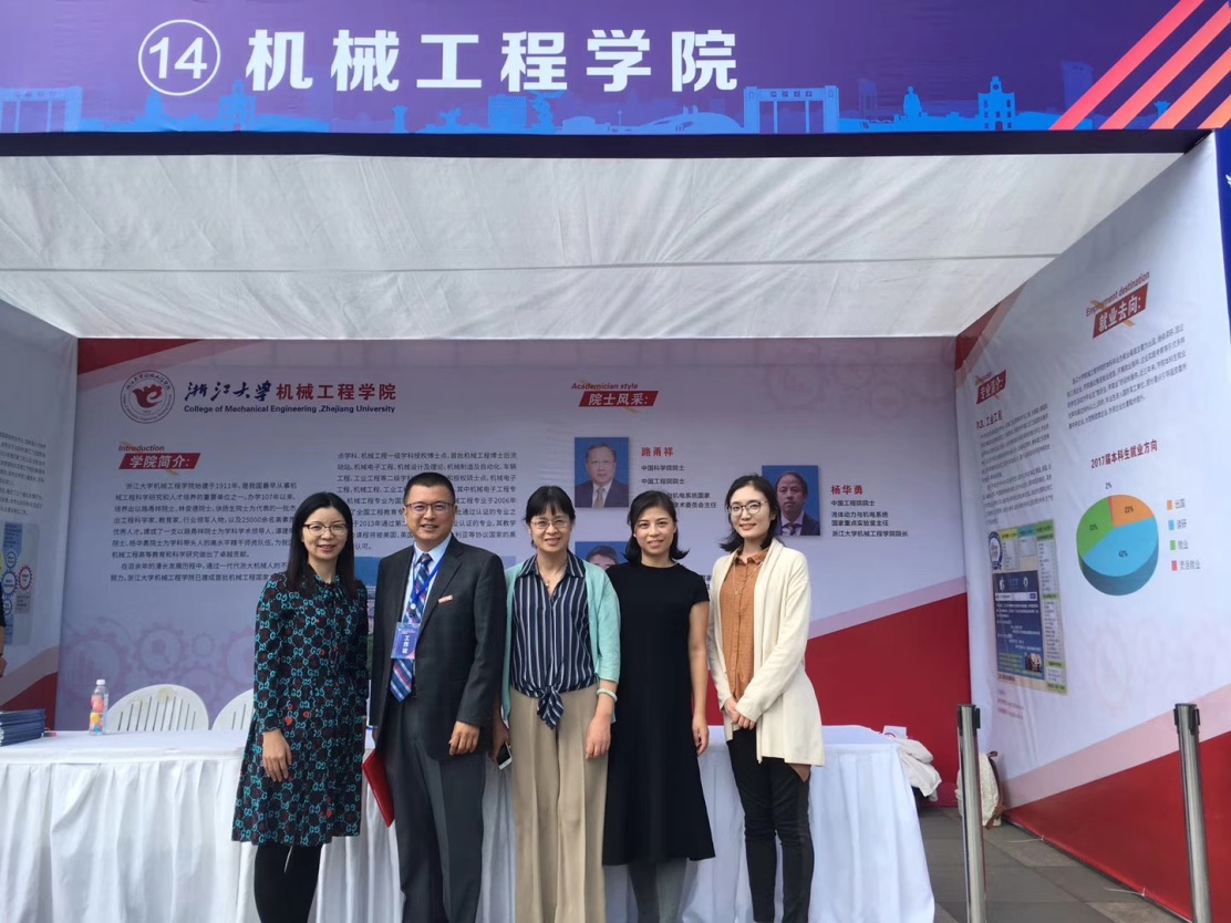 学院的老师们和学长们早早来到机械会场区域布置展位,让入场的学子们了解机械工程学院整体概况。