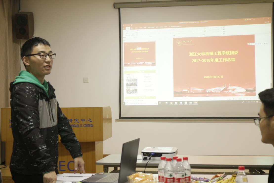 会议伊始,上一届挂职团委副书记纵怀志同学代表上一届团委学工进行了2017年-2018年度工作总结,他依次展示了每个部门的主要活动和各项所获成果,帮助新一届团学干部摸清各条线的工作脉络。接着,在场的每一位团学干部依次进行自我介绍,通过彼此了解,促进部门间的携手共进,互相帮助。