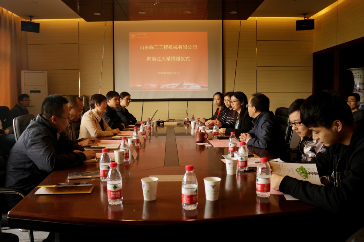 10月18日上午,山东临工工程机械有限公司向浙江大学的捐赠仪式在玉泉校区第一教学楼411室举行。参加本次捐赠仪式的人员有山东临工工程有限公司总经理助理宋晓颖,公司研发中心液压研究所所长董立队,公司杭州分公司综合部长房肖臻,公司招聘助理颜建超,浙大校友、公司2018新入职员工于志伟,以及机械工程学院党委副书记项淑芳老师,学院副院长刘振宇老师,院团委书记王芳官老师,团委副书记张晓昀老师,学院研究生代表等。本次会议由项淑芳老师主持。