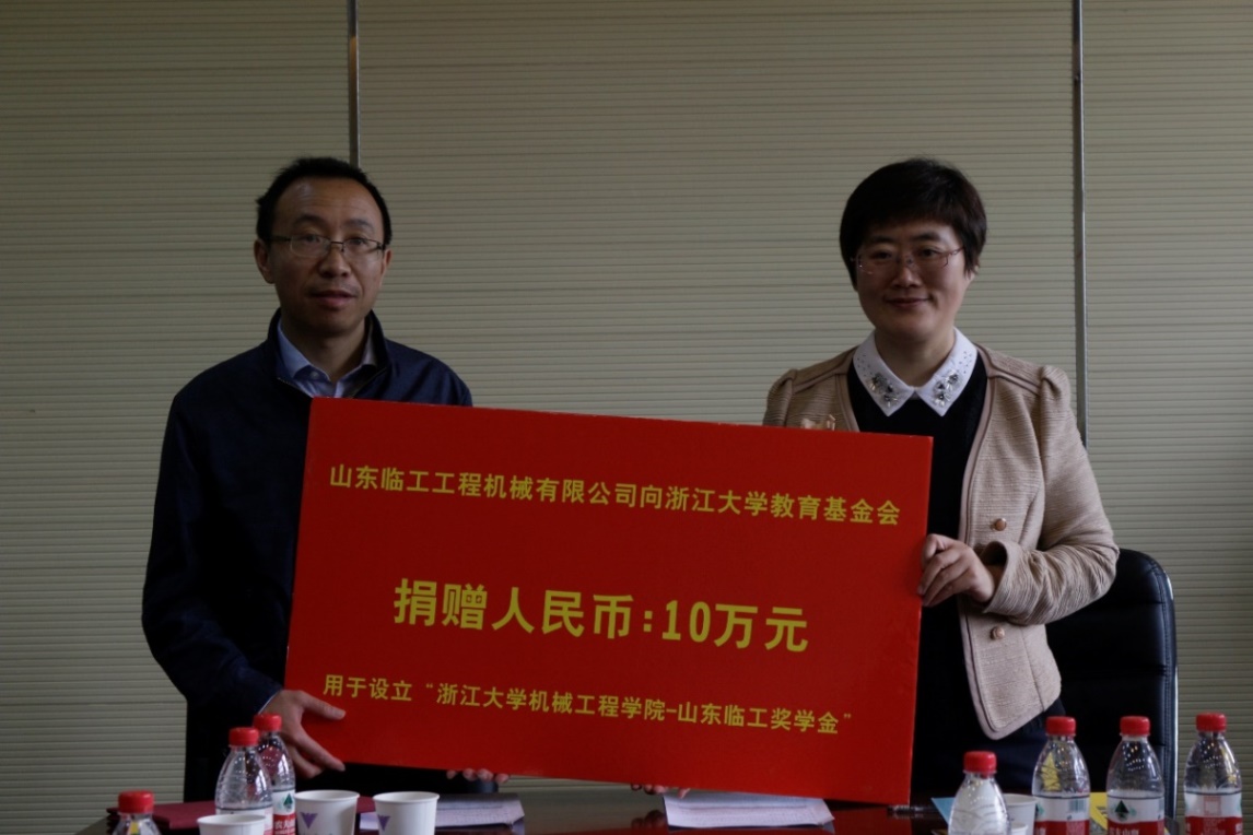 随后,双方举行了正式的签约仪式。山东临工工程机械有限公司此次给浙江大学捐赠人民币十万元,设立山东临工奖学金,用来奖励品学兼优,努力奋斗的浙大机械学子。
