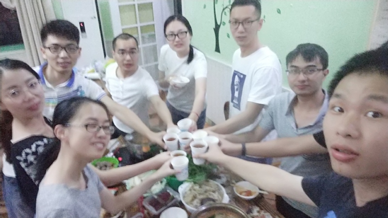 在火锅进行了大半的时候,大家开始下饺子,举杯庆祝祖国母亲69岁华诞,希望我们的祖国更加繁荣昌盛,更加强大!同时也为了大家能够在此时团聚在这里而开心。
