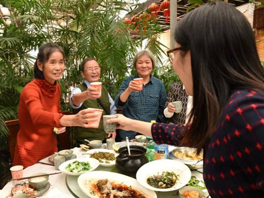 本次交流活动主要在西溪湿地茭芦田庄开展。田庄两面环水,沐浴着明媚的阳光,离退休教师们惬意地欣赏秀丽的山水。热情洋溢的志愿者和学院工会老师们一起为各位前辈教师提供茶点,用周到的服务保证大家能愉快交流,增进友情。