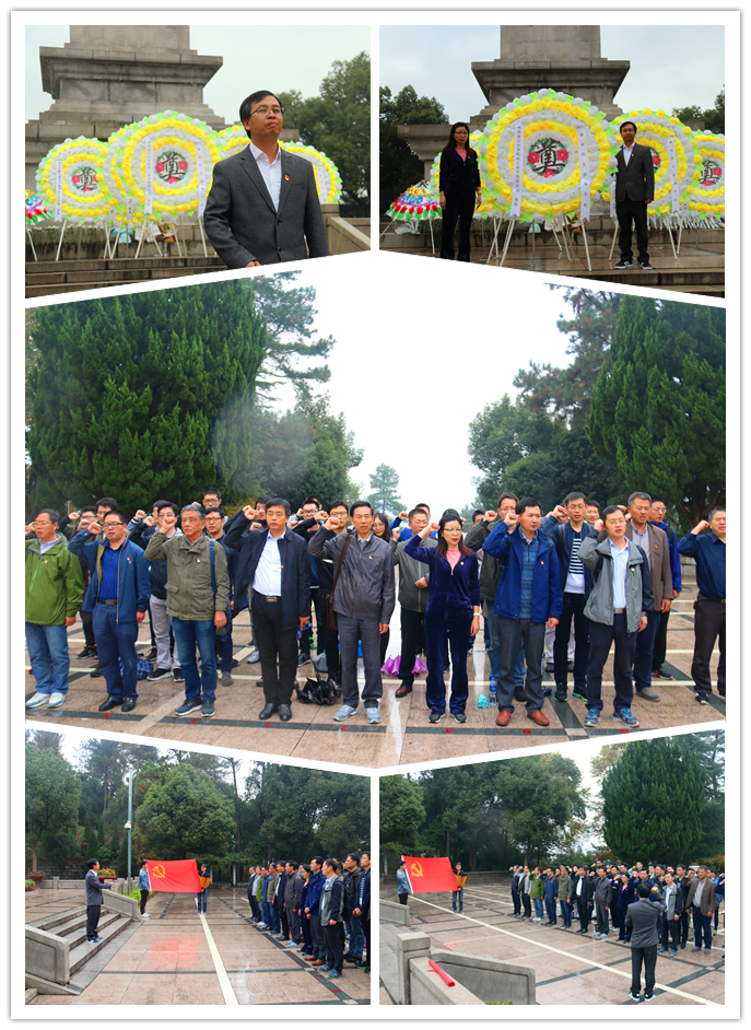在烈士纪念碑前,学院党委书记梅德庆、副书记项淑芳代表全体人员向革命烈士敬献花圈,全员进行三鞠躬。接着,由梅书记领誓,全体人员一起面向党旗和烈士纪念碑重温入党誓词。宣誓完毕后,梅书记发表讲话,他强调要高度重视学校支部书记轮训活动,党建活动举办要实实在在、支部书记学习要认认真真,做到思想上受教育,理论上有积累。关于支部工作方面,要严格落实好学校关于支部“对标争先”有关工作的部署,在“对标争先”的同时进一步夯实支部工作基础,争做先进党支部。另外,梅书记还提到了教职工党员发展,意识形态和安全管理等方面的有关事项。最后,由两位党员同志护卫党旗,带领全体成员绕烈士纪念碑一周,缅怀先烈。同时,全体人员还一起参观了革命烈士纪念馆,在纪念馆内,大家看到了当时的革命地地图模型,一面面红旗代表着在当时保留的革命的火种,正是这一粒粒的火种,才带来了革命的胜利。