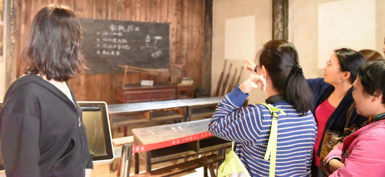 结束了四明山的游览后,大家共进午餐,很快便兴致勃勃地前往下一个景点——位于“浙东延安”梁弄镇的浙东抗日根据地旧址群。浙东行政公署的墙上满是革命语录,红色气息铺面而来。导游详细讲解了何克希将军等先辈们创立浙东抗日根据地的卓越生平事迹,并带领老师们参观了公署内的浙东抗日军政干部学校旧址。
