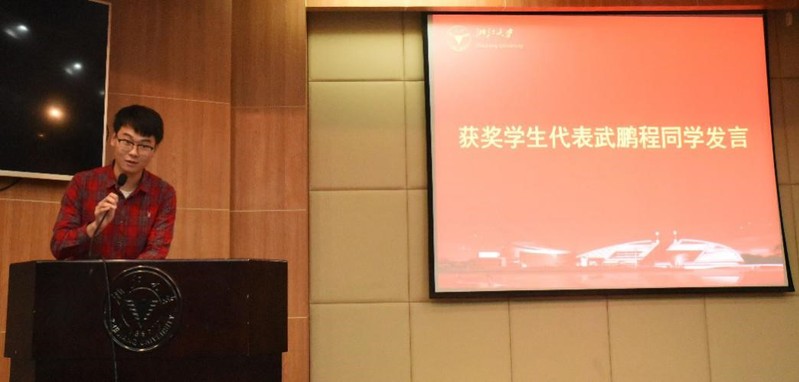 图注:学生代表武鹏程发言