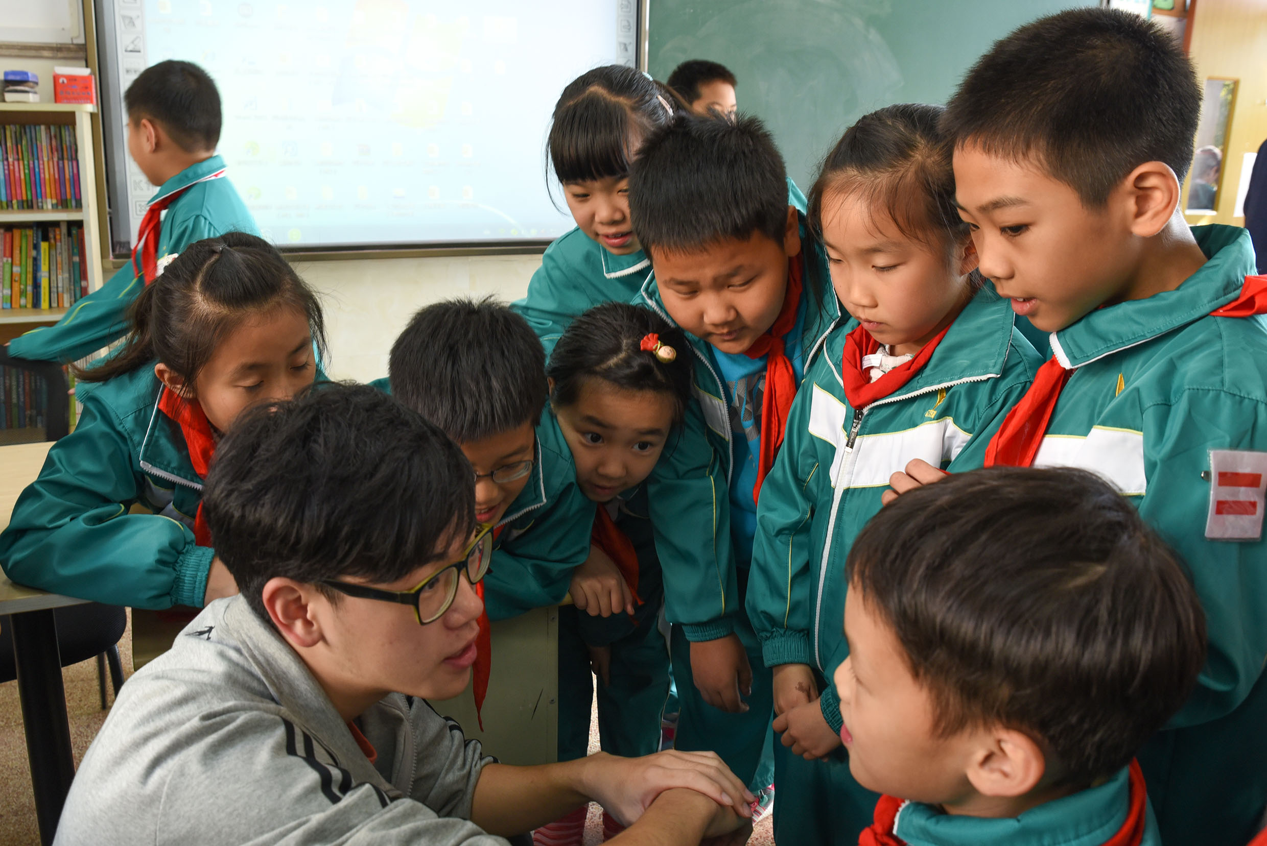 张博伦是浙江大学2016级机械电子工程的学生,也是马兰精神宣讲团成员,上课之前,他积极和参与课程的学生们交流,了解了他们平时上课、课外活动等基本情况,由此调整自己的讲解方式,来提升课堂的讲解效果。小朋友们十分热情地围在张博伦周围,介绍自己平时的学习情况。