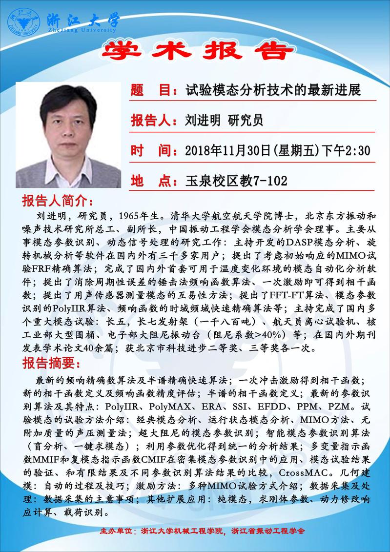 关于试验模态分析技术的最新进展学术报告的通知