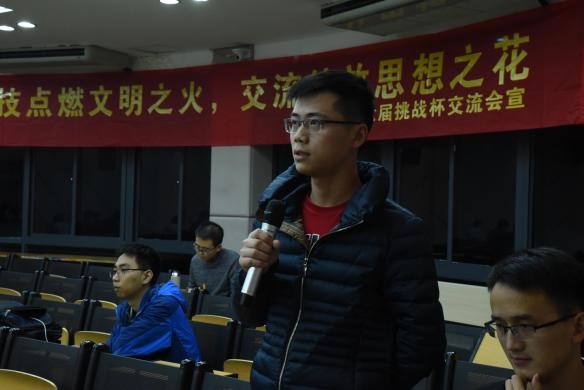 夏雷老师应邀给我们做了挑战杯的竞赛解读。他首先用数据告诉我们浙江大学历年来在“大挑”中获得的成绩,其中近几届都是由夏雷老师带领着队伍征战“大挑”,也取得了辉煌战绩,这既是对我们后来人的鼓励更是对我们的鞭策;夏老师接着详细介绍了“挑战杯”的报名,初赛以及复赛等具体流程,以及对应的详细要求,使在场同学对“大挑”有了全面完善的认识和了解。