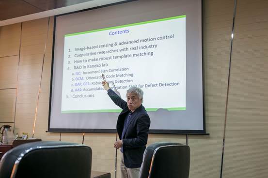 23日下午,在教1-411会议室,金子教授做了主题为“Robust Pattern Search for Real World Problems”的学术报告。在报告中,金子教授阐述了图像特征及算法鲁棒性的内涵及重要意义,并介绍了十几年来在该领域的多项研究成果及工业界的应用。30多位师生参加了报告会,在会后的自由讨论交流中,金子教授与师生们分享了在深度学习、缺陷检测等方面的研究经验。整个报告会持续了2多小时。