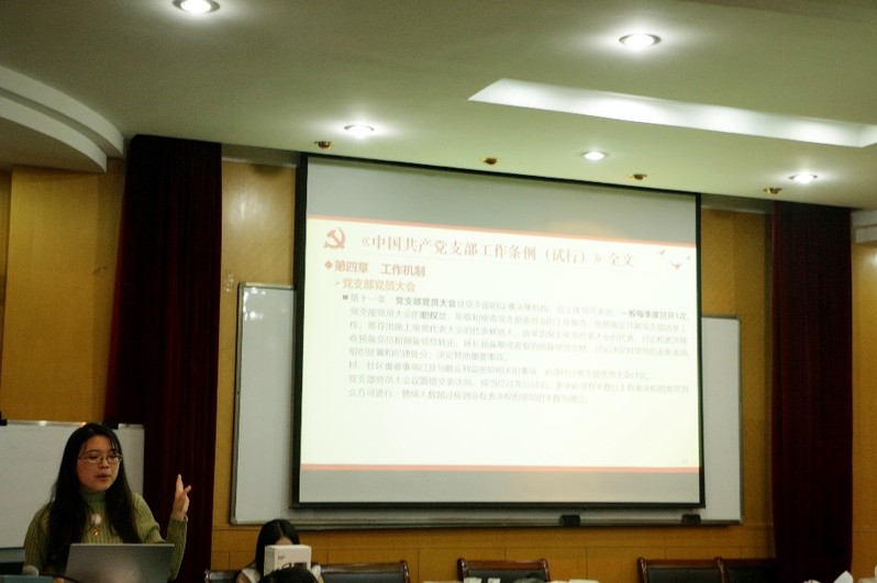 随后,两个学院的支部党员们共同学习了中共中央下发的《中国共产党支部工作条例(试行)》。《条例》是新时期党中央对基层党支部建设的新要求,列明了党支部日常工作的开展标准。党支部是党的基础组织,是党在社会基层组织中的战斗堡垒,是党的全部工作和战斗力的基础,担负直接教育党员、管理党员、监督党员和组织群众、宣传群众、凝聚群众、服务群众的职责。推进伟大斗争、伟大工程、伟大事业、伟大梦想,必须贯彻落实新时代党的组织路线,把党支部建设放在突出位置,加强党支部标准化、规范化建设,不断提高党支部建设质量。