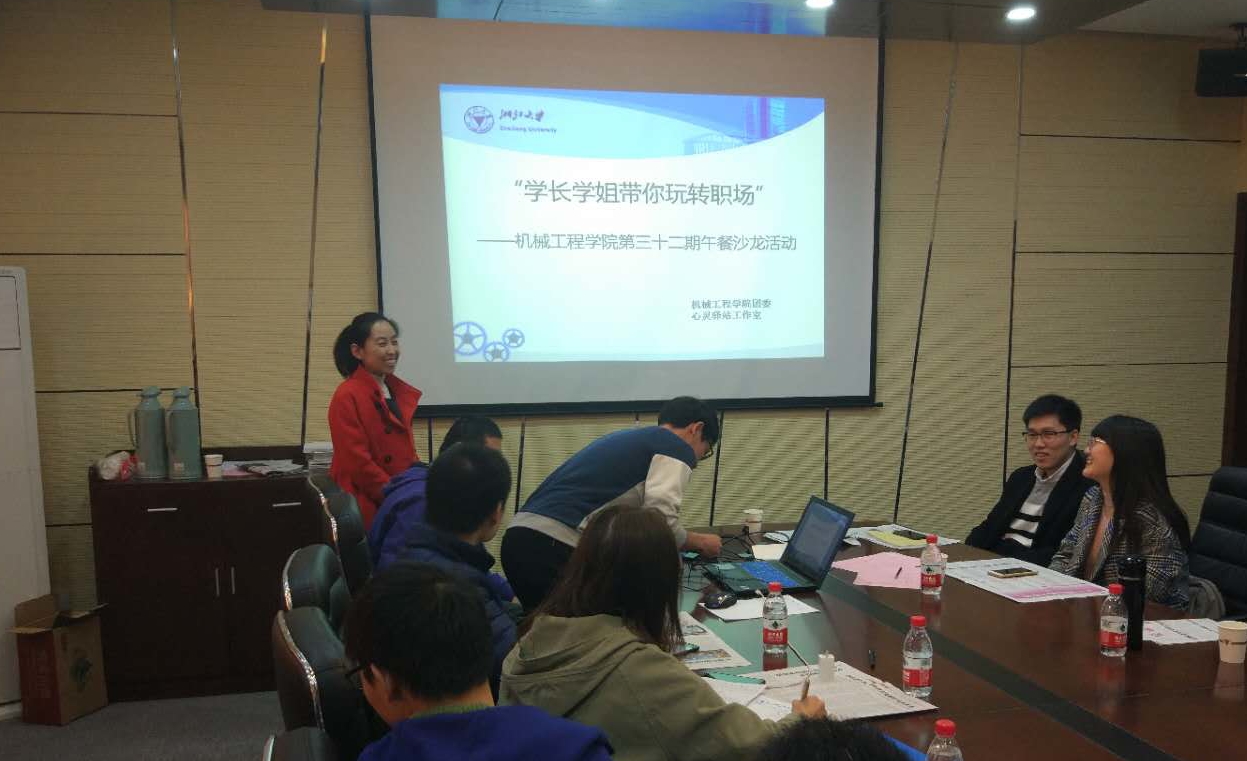 11月28日中午,学院求职经验分享会暨第三十二期午餐沙龙活动在教一411教室如期而至。本期活动邀请了4名2019届毕业的优秀硕士学长学姐来解答同学们在职业规划和面试技巧等方面的相关问题。学院团委副书记张晓昀老师主持本次活动,参加活动的有各专业的学生代表。