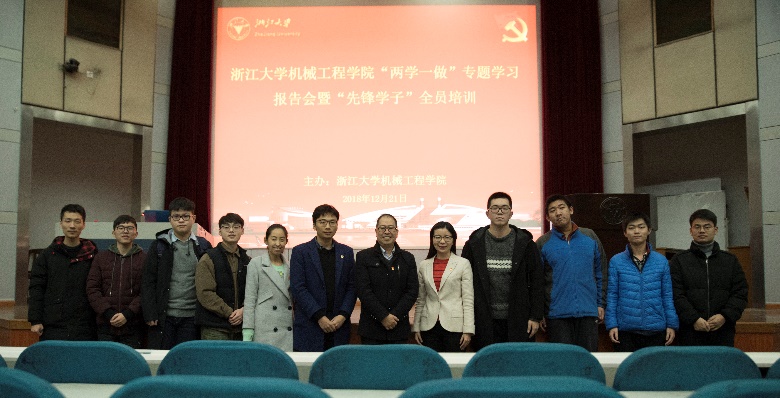 2018年12月21日下午13:30,为深入学习贯彻习近平新时代中国特色社会主义思想和党的十九大精神,认真贯彻落实全国教育大会精神和学校第十四次党代会精神,充分发挥党员先锋模范作用,机械工程学院“两学一做”专题报告会暨“先锋学子”第十五次培训在玉泉校区教七影视厅顺利召开。活动特邀浙江大学传媒与国际文化学院党委书记兼副院长王庆文老师为学生党员做“青年学生的综合能力提升”的专题报告。机械工程学院全体学生党员、团委老师及部分信电学院学生党员参加了此次报告会。报告会由机械工程学院党委副书记项淑芳老师主持。