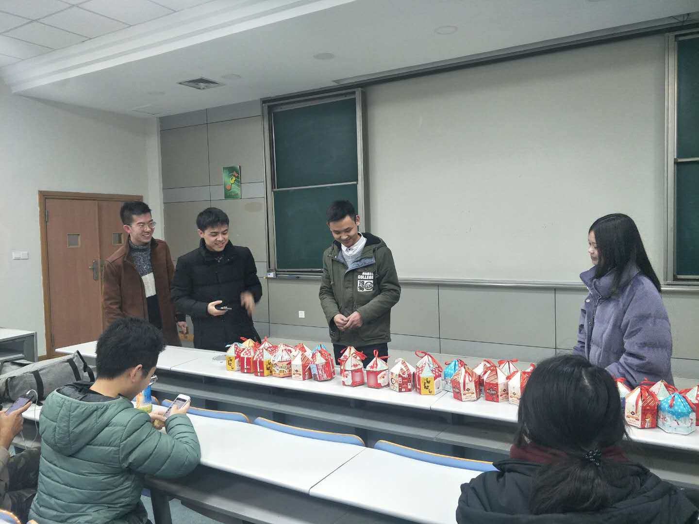 2018年12月26日晚,在新一年即将到来之际,我们图学硕18团支部举行了小而温馨的聚会,聚会上,同学们领到了支部准备的新年小礼物。大家在领取礼物时分享了2018年在浙大相聚后的趣事与感想,使集体成员互相有了更深刻的了解。我们都准备好了共同迎接崭新的2019年。