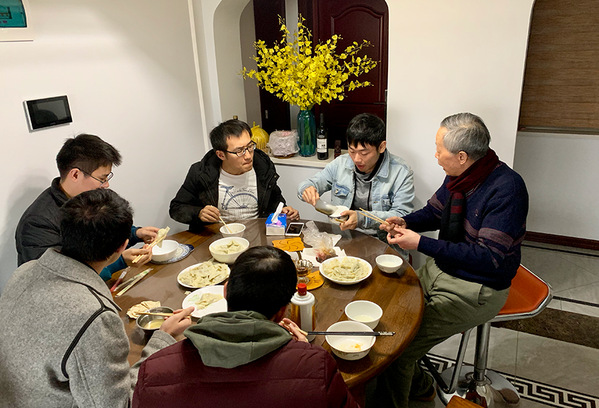 传说冬至节吃了饺子不冻耳朵。在饭桌上,金老师和同学们就着热腾腾的饺子,吃跑了冬天的寒意,吃来了师生的温暖。