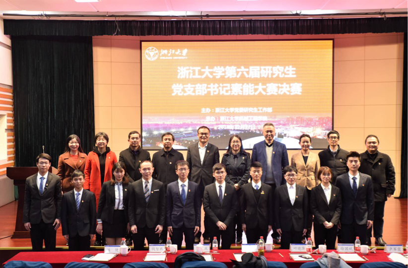 2018年12月27日晚,浙江大学第六届研究生党支部书记素能大赛决赛在紫金港校区临水报告厅隆重举行。浙江大学纪律检查委员会副书记叶晓萍、浙江大学党委研究生工作部部长张荣祥、浙江大学机关党委书记徐国斌、浙江大学机械工程学院党委书记梅德庆、浙江大学党委宣传部副部长卢军霞、浙江大学党委统战部副部长钱智敢、浙江大学党委教师工作部副部长陈海荣、浙江大学党委学生工作部副部长潘健、浙江大学党委研究生工作部副部长陈凯旋出席大赛并担任评委。经过前期集中培训和预赛“党支部主题活动”、“党务知识”、“微党课”三个环节的激烈角逐,来自10个学院(系)的10位研究生党支部书记脱颖而出进入决赛。最终,我院学生制造技术及装备自动化研究所硕士研究生第一党支部副书记何权在比赛中表现优异,以第一名的成绩荣获大赛一等奖。