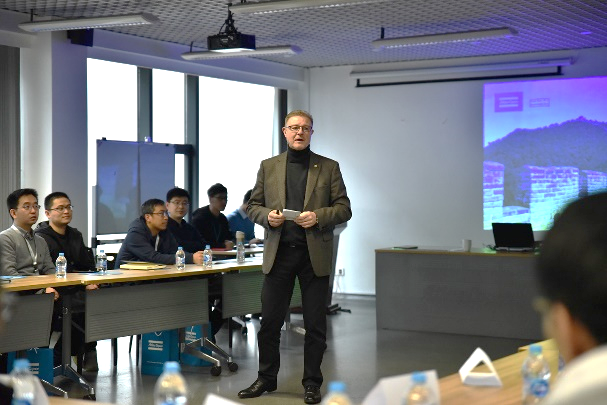 首先,在公司负责人的带领下,同学们先后进入了压缩机的生产线和研发中心进行实地参观,看到标准化、模块化的压缩机生产线,设备精良的实验室。创新是阿特拉斯·科普柯的核心价值观之一,研发中心的专利墙是这一点的最好体现,90多项专利贴满了两面展示墙,同学们纷纷过来围观并称赞。