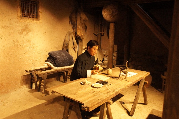 在陈望道先生从小居住到大的故居老宅里,党建基地宣讲员、我院在读研究生蔡君辉结合实情实景,在故居前廊、故居柴屋,为大家别开生面地讲述了陈望道先生的故事,让全员更细致地了解了陈望道先生的生平事迹。看到现场视频里习总书记对陈望道先生的故事的深情讲述,提到“真理的味道分外甜”,大家感触颇深。来到了将当时翻译现场还原布置的柴房,在亲眼见到陈望道先生当初翻译《共产党宣言》的真实场景——两条板凳,一块铺板,又当书桌又当床,同时联想早春时节的寒风凛冽,想到望道先生是如何顶着压力在这破旧的柴房里埋头进行《共产党宣言》的翻译,甚至把墨汁当成红糖吃掉,这份追寻真理的坚毅,这份为国人命运寻大道的执著,使在场党员不由得肃然起敬。