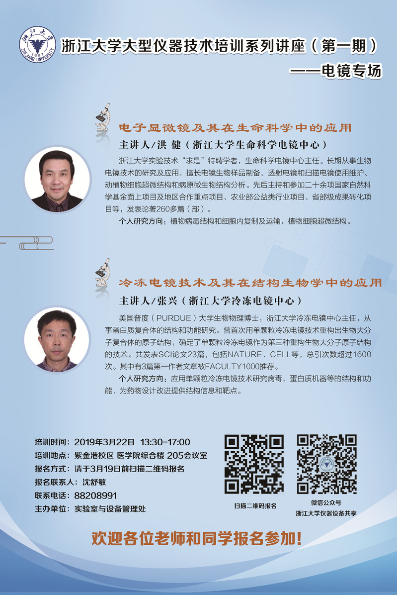关于浙江大学大型仪器技术培训系列讲座(第一期)——电镜专场的通知