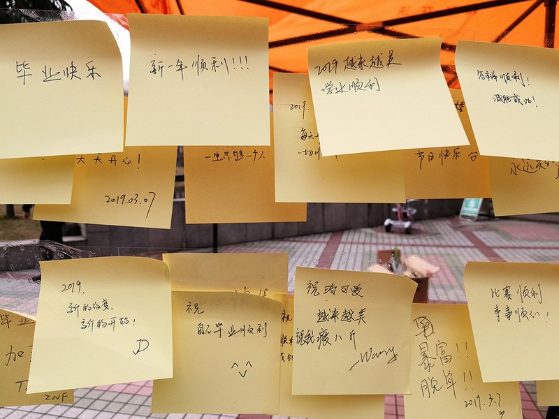 图注:女生在现场写女生节愿望