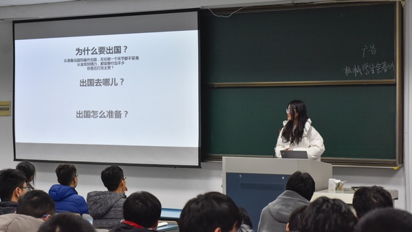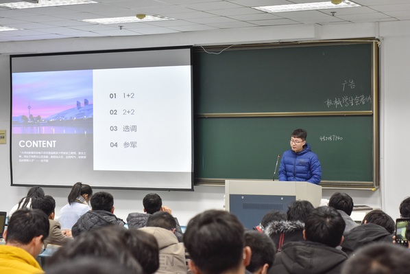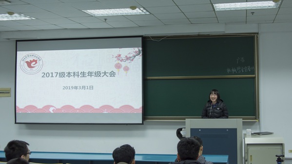 2019年3月1日周五下午,2017级机械工程学院本科生年级大会在东二102教室开幕。学院特地邀请了7位优秀学长学姐给同学们带来保研、考研、出国、就业等未来生涯规划和生活选择,17级两百多位同学,在教室中有序就坐,静静等待着嘉宾和老师的到来。