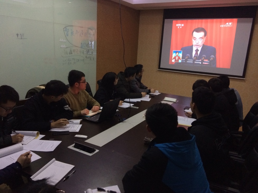大会伊始,党支部副书记吴晨芳同志向全体党员介绍了本次学习活动的流程安排。首先全体党员认真观看了李克强总理在第十三届全国人大二次会议开幕式上做的政府工作报告,接下来全体党员以总理的报告为主题,结合自己的亲身经历和独特思考,热烈讨论了过去一年来我们国家在中国共产党领导下在各方面取得的成就,还对国家未来发展的规划表现出了热切的期盼和向往。
