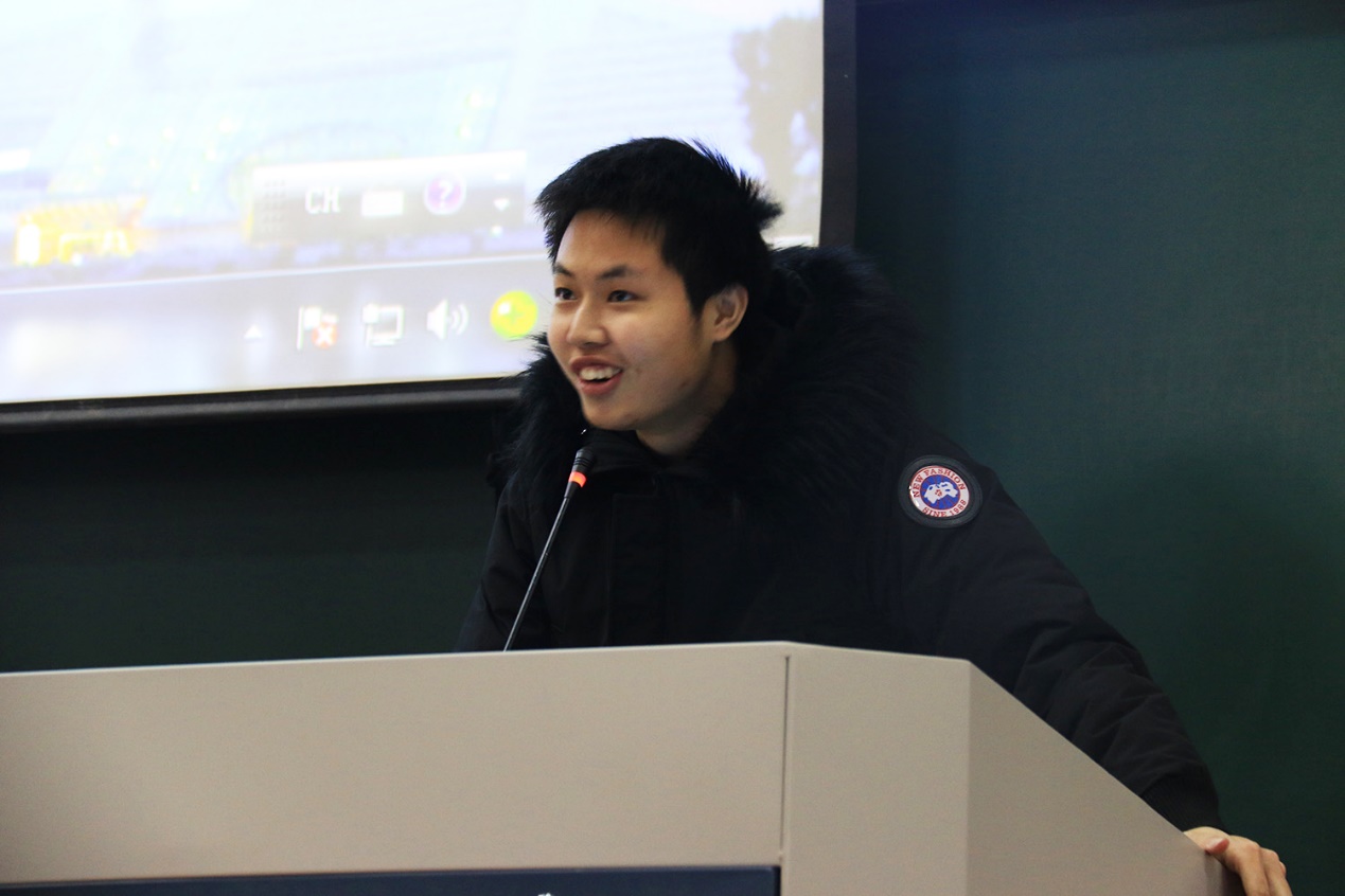 最先上台的陈力源同学对美国留学的情况结合自身经历进行了详细的介绍,包括前期准备,申报流程等,给同学们提供了宝贵的经验。