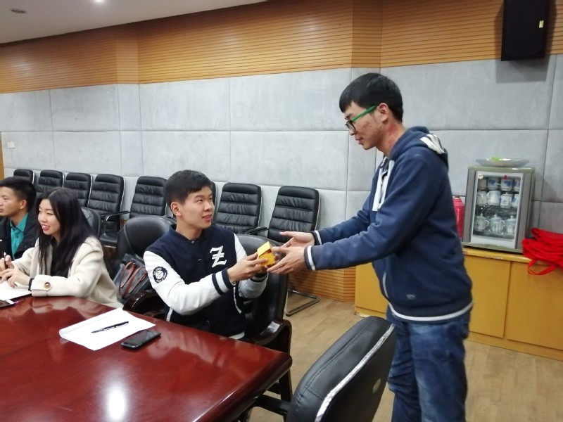 图注:党支部向毕业生党员同志赠送礼物