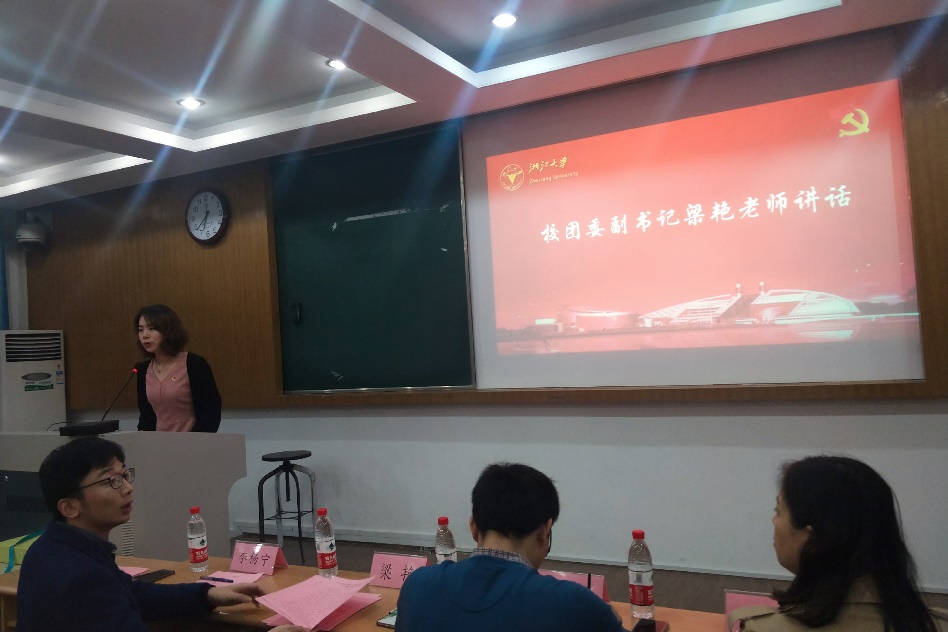 为提高学生骨干和广大团员青年的思想政治素质、政策理论水平、创新和实践能力,使其进一步坚定跟党走中国特色社会主义道路的信念。2019年4月12日晚上,机械工程学院在玉泉教四306举行了“机械菁英”青马学院(青年马克思主义者)第十一期培训班开班仪式。浙江大学校团委副书记梁艳老师,校党委组织部组织工作办副主任郭彪老师,学院团委书记王芳官老师,团委副书记李杨宁老师和学院第十一期青马工程学员共同参加了开班仪式。仪式由机械工程学院团委书记王芳官老师主持。浙江大学校团委副书记梁艳老师首先致辞。她鼓励青马学员们能够在本次培训中不忘初心,牢记使命,在不断坚定共产主义信仰的道路上收获成长,收获锻炼。