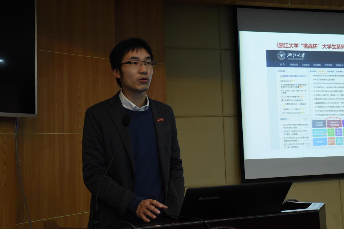 夏雷老师应邀给我们做了挑战杯的竞赛解读。他首先用数据告诉我们浙江大学历年来在“大挑”中获得的成绩,其中近几届都是由夏雷老师带领着队伍征战“大挑”,也取得了辉煌战绩,这既是对我们后来人的鼓励更是对我们的鞭策;夏老师接着详细介绍了“挑战杯”的报名,初赛以及复赛等具体流程,以及对应的详细要求,使在场同学对“大挑”有了全面完善的认识和了解。