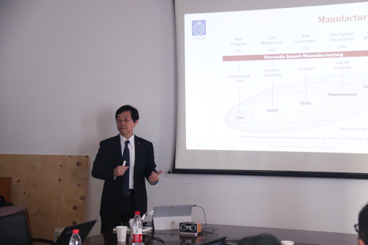 2019年4月19日,应我院工业工程研究所彭涛老师邀请,瑞典皇家理工大学、加拿大工程院院士、Robotics and Computer-Integrated Manufacturing等3个国际SCI期刊主编Lihui Wang教授访问浙江大学机械工程学院,进行了题为“Sustainable Cybernetic Manufacturing: A Research Overview at KTH”的学术报告。报告会在工业工程研究所三楼会议室举行,由研究所所长唐任仲教授主持。顾新建教授、纪杨建教授、英国埃克塞特大学杨迷影博士等30多位师生参与了讲座及讨论。