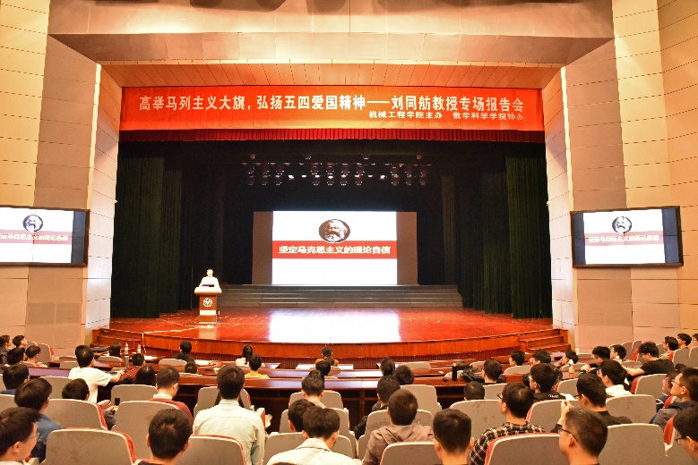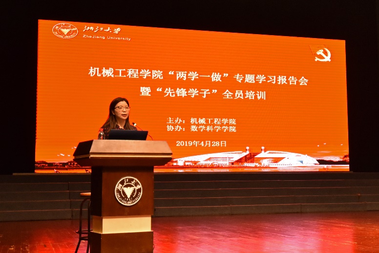 2019年4月28日下午,为深入学习宣传贯彻习近平新时代中国特色社会主义思想和党的十九大精神,进一步推进“两学一做”学习教育活动的常态化、制度化,在“五四运动”100周年即将到来之际,机械工程学院“两学一做”专题报告会暨“先锋学子”第十六次培训在玉泉校区永谦剧场顺利召开。活动特邀浙江大学马克思主义学院院长刘同舫教授作为主讲。机械工程学院全体学生党员、积极分子、团员代表和团委老师,以及数学科学学院学生党员参加了此次报告会。报告会由机械工程学院党委副书记项淑芳老师主持。