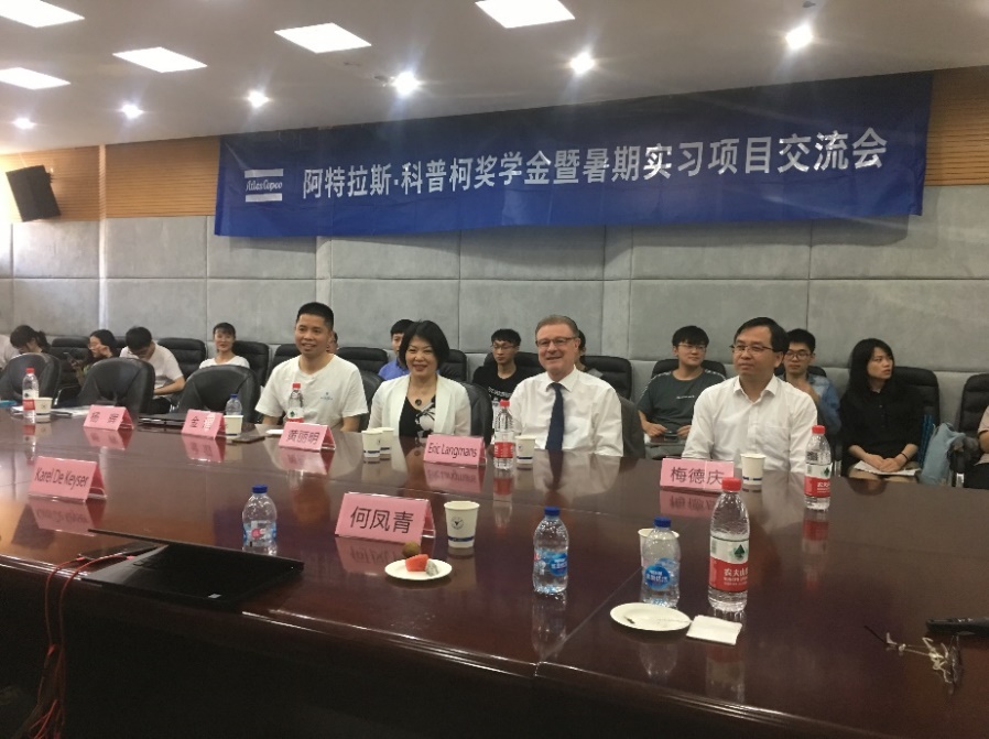 2019年5月30日,阿特拉斯•科普柯奖学金评审会暨暑期实习项目交流会在玉泉校区液压老楼四楼会议室成功举办。公司法人代表、总经理EricLangmans,人力资源部经理黄丽明,工程部经理AC Karel De Keyser、何风清,市场部校友杨辉,人力资源业务伙伴陈露,机械工程学院党委书记梅德庆教授,能源工程学院党委书记金滔教授,机械工程学院团委副书记张晓昀老师,以及能源工程学院团委副书记朱学诚老师出席本次活动。