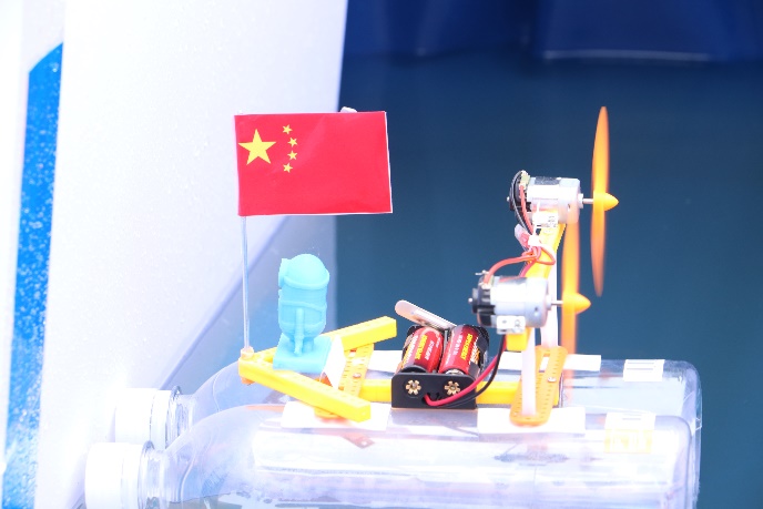 接下来是振奋人心的水上机器人对抗环节!两两对抗进行淘汰制,赛事一开始就进入了白热化,不仅小朋友们,大朋友们也都情不自禁的在为参赛的队伍加油。有的是水上机器人船体打到了对手的螺旋桨上取得了胜利,还有的是水上机器人靠着自身船体的坚韧和持久的动力续航战胜了对手。