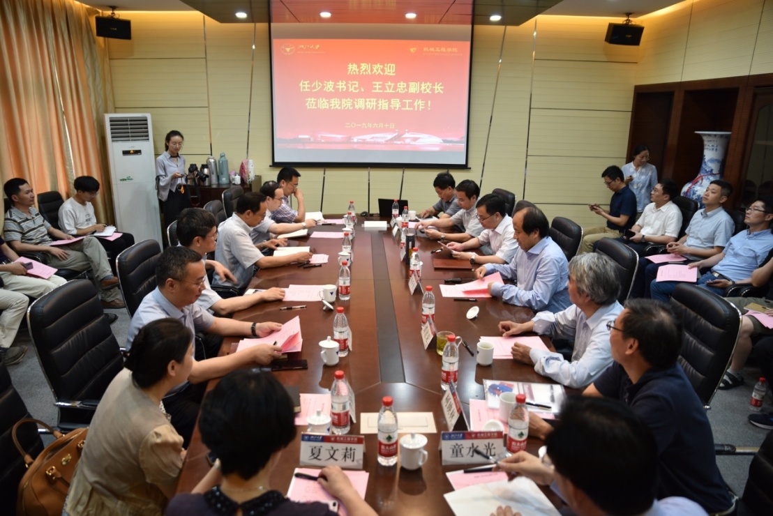 6月10日下午,校党委书记任少波、党委常委兼副校长王立忠莅临我院调研指导工作,并举行座谈会,听取了机械工程学院总体发展情况以及党建工作情况的汇报。