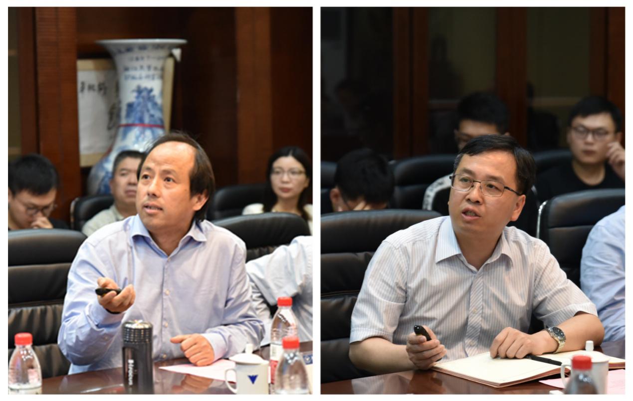 在自由交流阶段,谭建荣院士指出,学院教师规模较小,就加强引进优秀人才进行了建议。随后,教师代表柯映林教授、付新教授、童水光教授、陈远流研究员相继围绕学院“双一流”建设、创新科技战略布局、跨学科汇聚计划、标志性成果培育、支部党建、产学研合作、本土人才培养等内容发表意见。