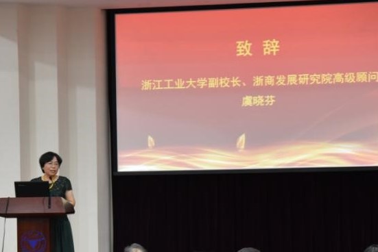 随后,浙江工业大学副校长虞晓芬做了致辞。“当代社会市场活力来源于人,来源于企业家”,虞晓芬以习近平总书记的话语引入企业家精神话题。并与大家品读分享《木匠浙商》这一全新传记,虞晓芬鼓励同学们向倪良正先生学习,学习他艰苦奋斗、敢于创新、勇于担当的精神,努力做一个无愧于时代的人。最后她对圣奥慈善基金会多年来多贫困学生的爱心资助表示感谢。