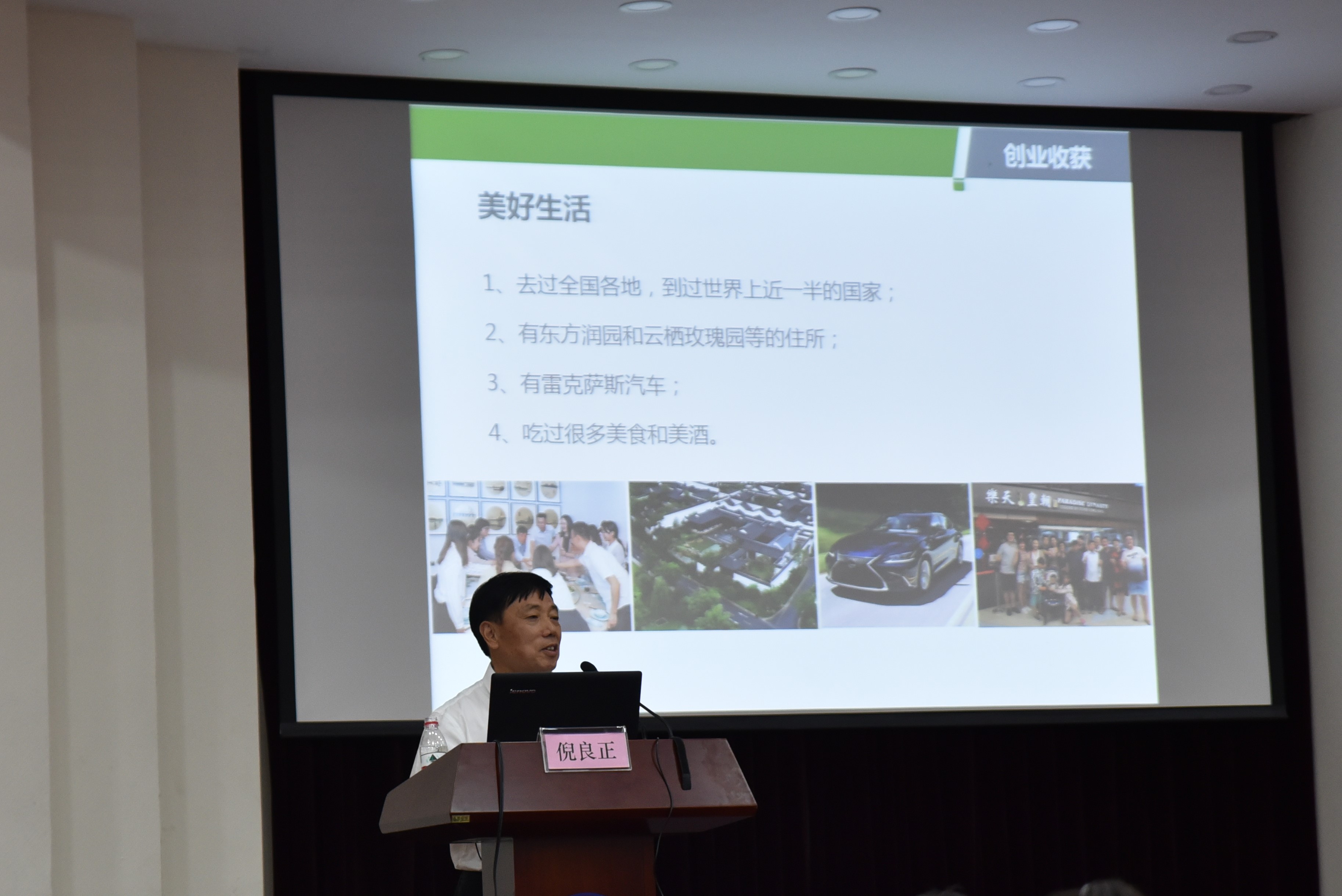 图注:圣奥集团董事长倪良正做“我的创业之路”主题报告