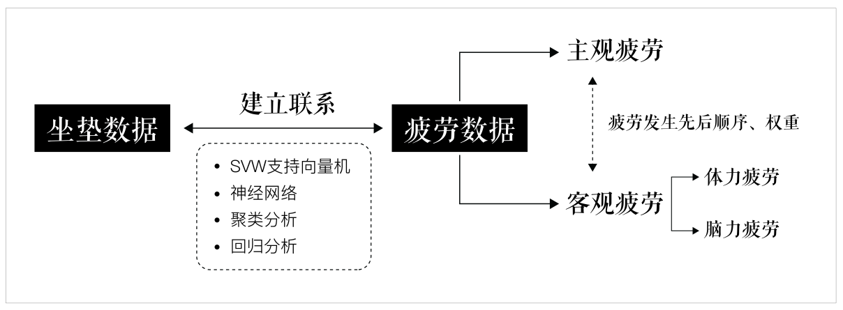 目的:基于坐姿健康与工作疲劳之间存在显著相关性的假设,通过对我司现有智能健康座椅产生的大数据进行分析(心率、呼吸率、精神压力、久坐疲劳等数据),意在通过一系列坐姿健康与工作疲劳主客观实验,建立坐姿数据与工作疲劳相关数学模型,最终应用于现有坐姿健康检测坐垫设备中。