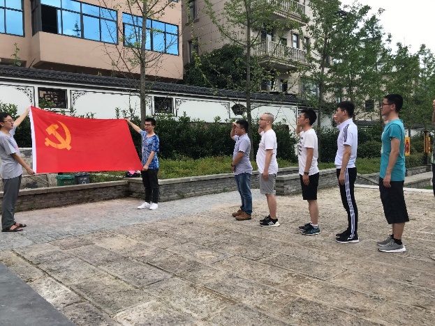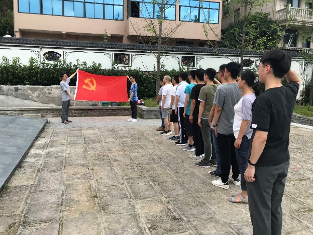 在完成故居的参观学习之后,毕业生党员一行前往宣誓广场寻找初心、坚定信仰,重温入党时的赤忱初心。