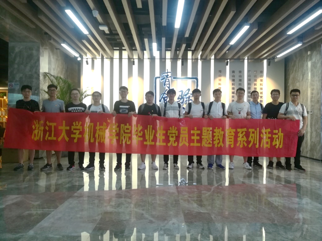 2019年6月28日,浙江大学机械工程学院本科毕业生党员奔赴青山湖科技城党建基地开展现场实践教育活动。机械工程学院机械工程与工业工程本科生支部的毕业生党员、学生讲解员、机械工程学院党员素质发展中心成员共同参与。本次活动由机械工程学院团委副书记李杨宁老师带队。