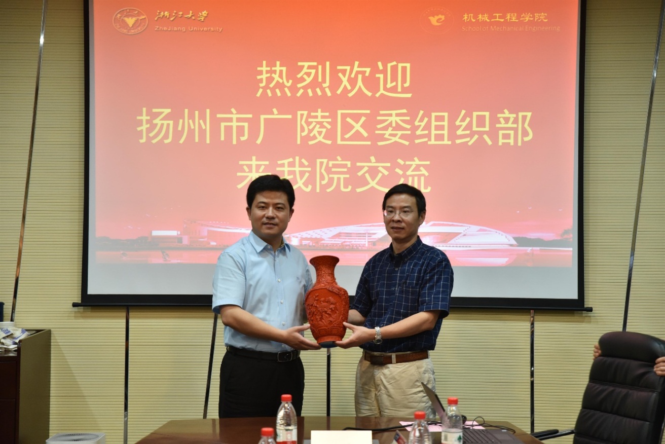 6月28日上午,由扬州市广陵区委常委、组织部部长王飞飞带队,广陵区委组织部副部长童忠、海沃集团环卫技术总监Alessandro Prosperi等企业高管一行7人来我院考察交流。浙江大学机械工程学院副院长居冰峰、学院教授代表王宣银以及学院相关科室负责人热情接待了来宾,并于教一411会议室进行了座谈交流。