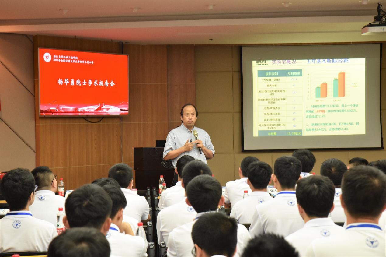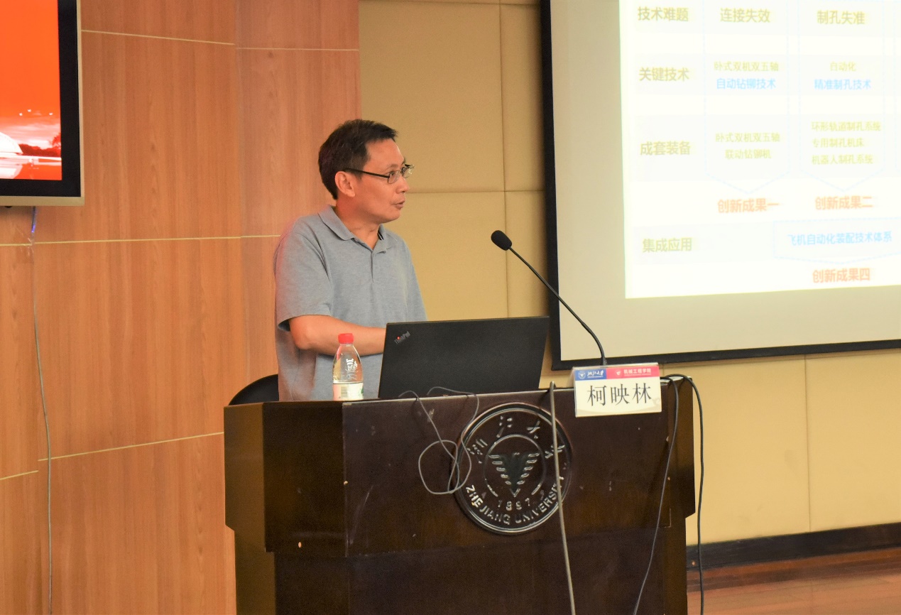 当天上午,杨华勇院士为营员们介绍了机械工程学院近年来的实验室概况以及所获得的代表性成果,并对机械电子控制工程研究所在技术上的突破作了详细介绍。随后,飞机数字化装备领域专家柯映林教授为大家介绍了飞机数字化装配技术、装备及系统集成与应用的发展历程、前沿动向以及未来的研究工作。